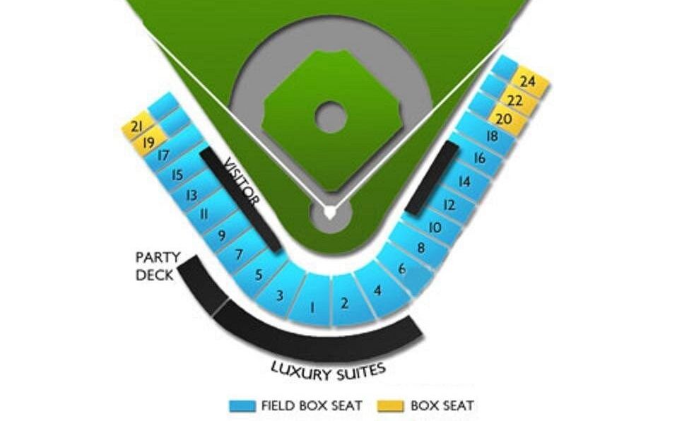 - Le prix du billet comprend un siège dans la catégorie Box Seats, la catégorie en jaune sur le plan ci-dessous. Notez que les billets ne sont ni remboursables, ni échangeables.